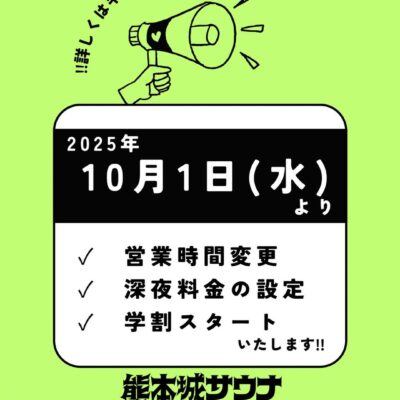 ※変更の可能性もあります。最新情報は城の湯スタッフアカウントをご確認ください。